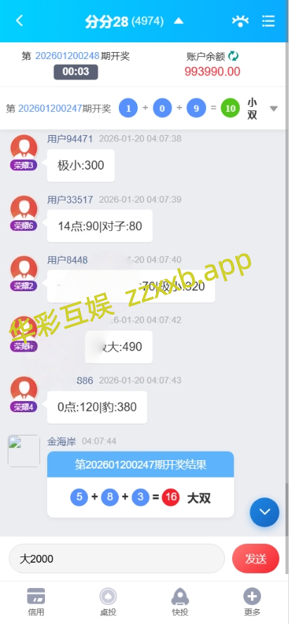 亮点:桌投、快投、信用投注 多种玩法选择!